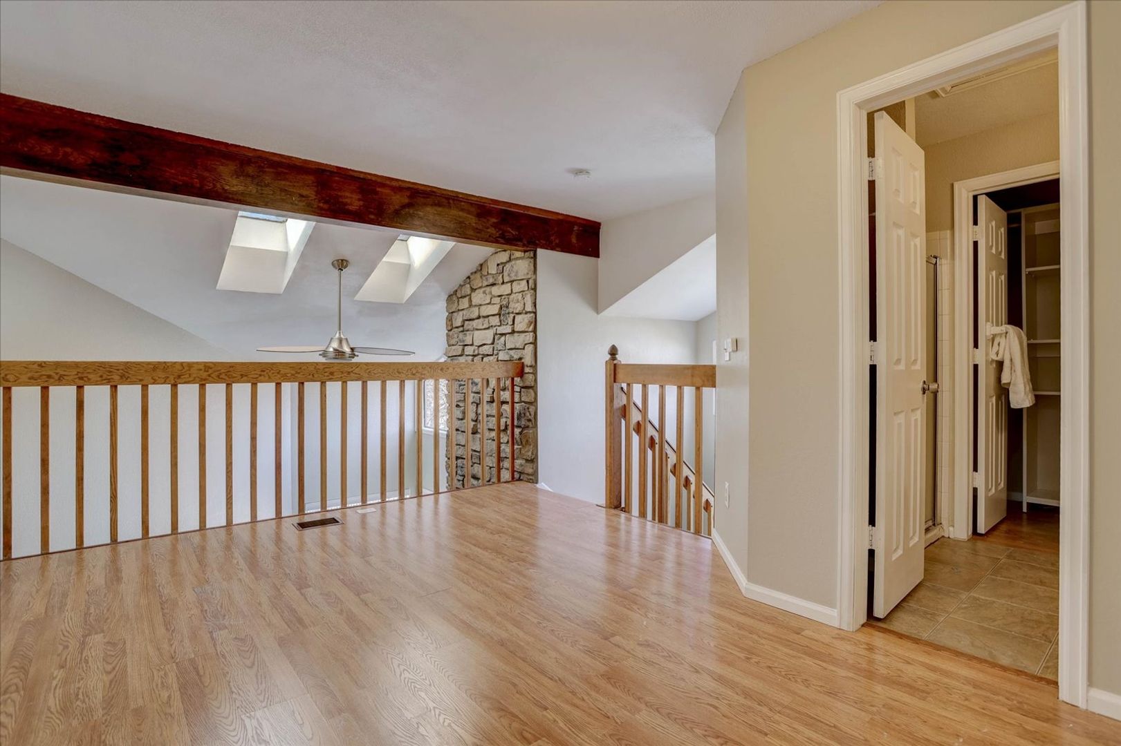 The upper level loft offers an entire separate living space with hardwood floors that could be used as a 2nd bedroom, flex space, exercise room, or would make a great office. In addition to the living space there is a remodeled 3/4 bathroom, and walk-in closet. Bonus, secondary entry from the outside right into the loft space.