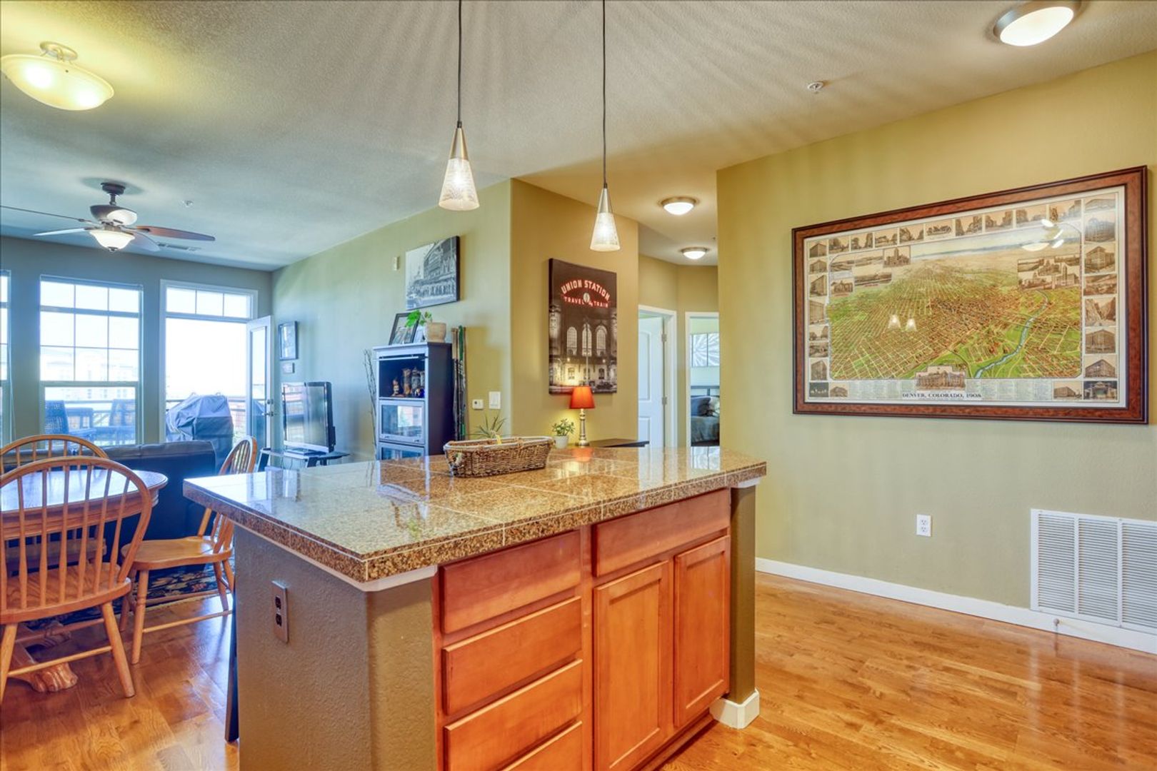 Well appointed 3rd floor condo in a super location. Step inside to a tastefully updated floor plan that is free flowing and open from the kitchen to the dining to the family room. Hardwood floors throughout. The kitchen is highlighted by maple cabinetry, stainless steel appliances, granite tile counters, subway tile backsplash and a large kitchen island with pendant lighting and extra cabinet space. Nice sized dining area open to an expansive family room featuring huge windows and a balcony that flood the home with tons of natural light.