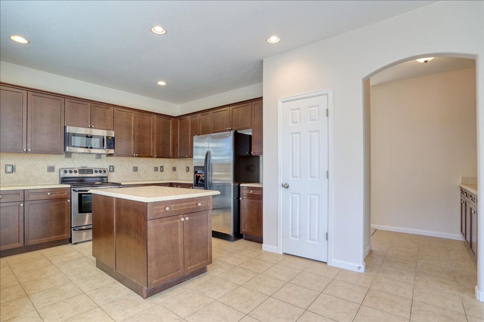 Step inside to a welcoming tile entry that leads to the large family room with gas fireplace, mantle, and lots of windows engulfing the main space with tons of natural light. Open and free flowing layout. Large kitchen and dining space just off the family room featuring tile floors, dark custom wood cabinetry, island, stainless steel appliances and deep kitchen sink. Entertain guests in the formal dining room with butler’s pantry. Easy to maintain outdoor backyard with deck and flagstone patio! Main level has a powder bath and laundry room.